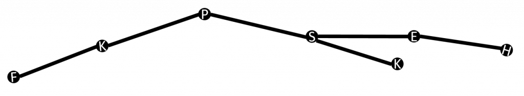 Positionen nach Schritt 2: Fuß (F), Knie (K), Popo (P), Schulter (S), Kopf (K), Ellbogen (E) und Hände (H)